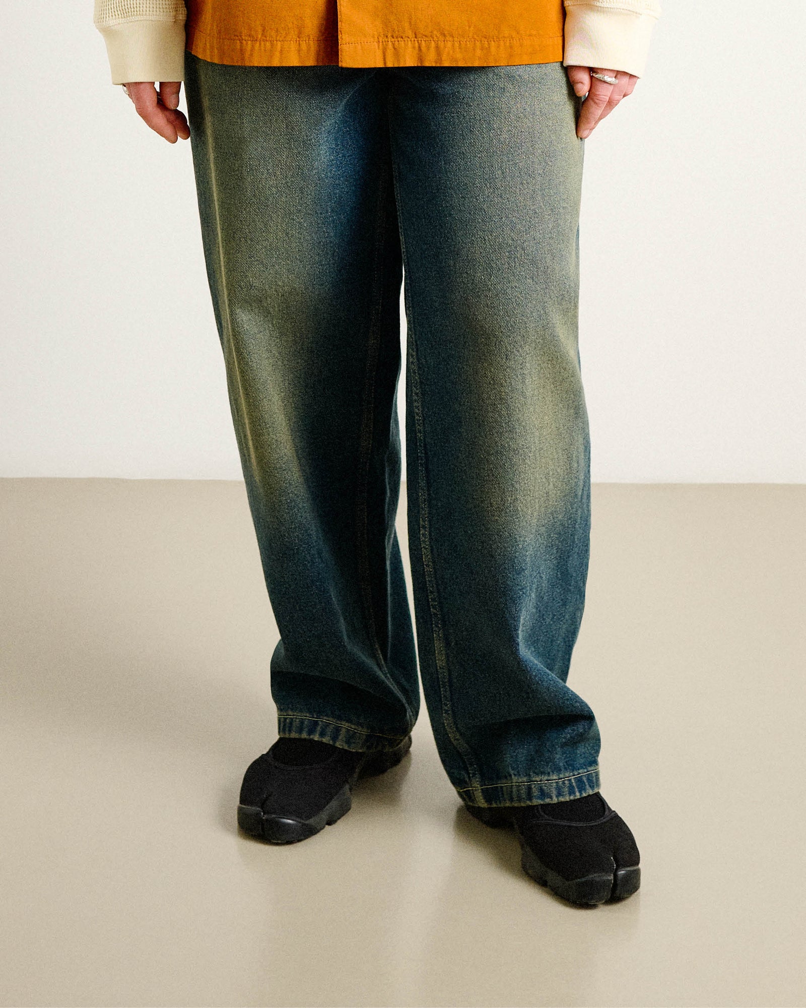 At a time when skate fashion was dominated by slim chinos, Pontus wanted to bring back looser, more expressive silhouettes that reflected the culture he grew up with. Together with the Head of Design, Mathilda, and the Instagram collector Big Baggy Jesus, Pontus started to explore what the perfect baggy pant could be: