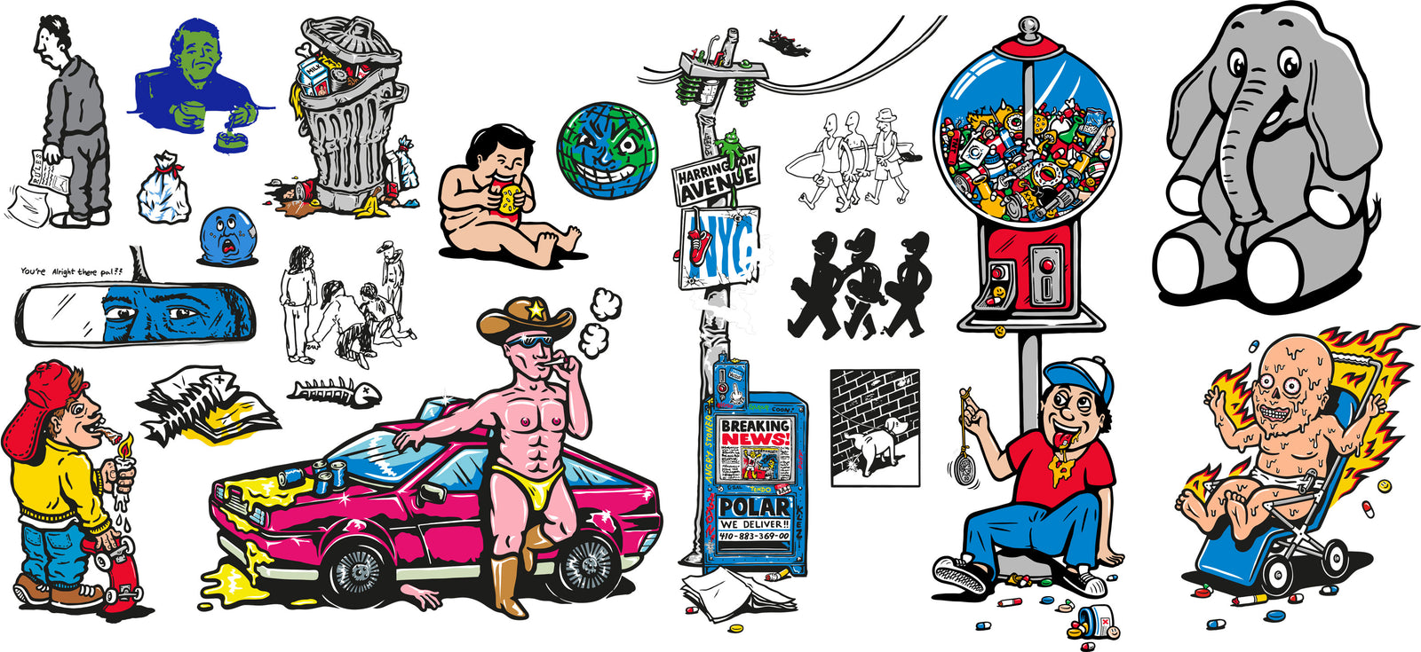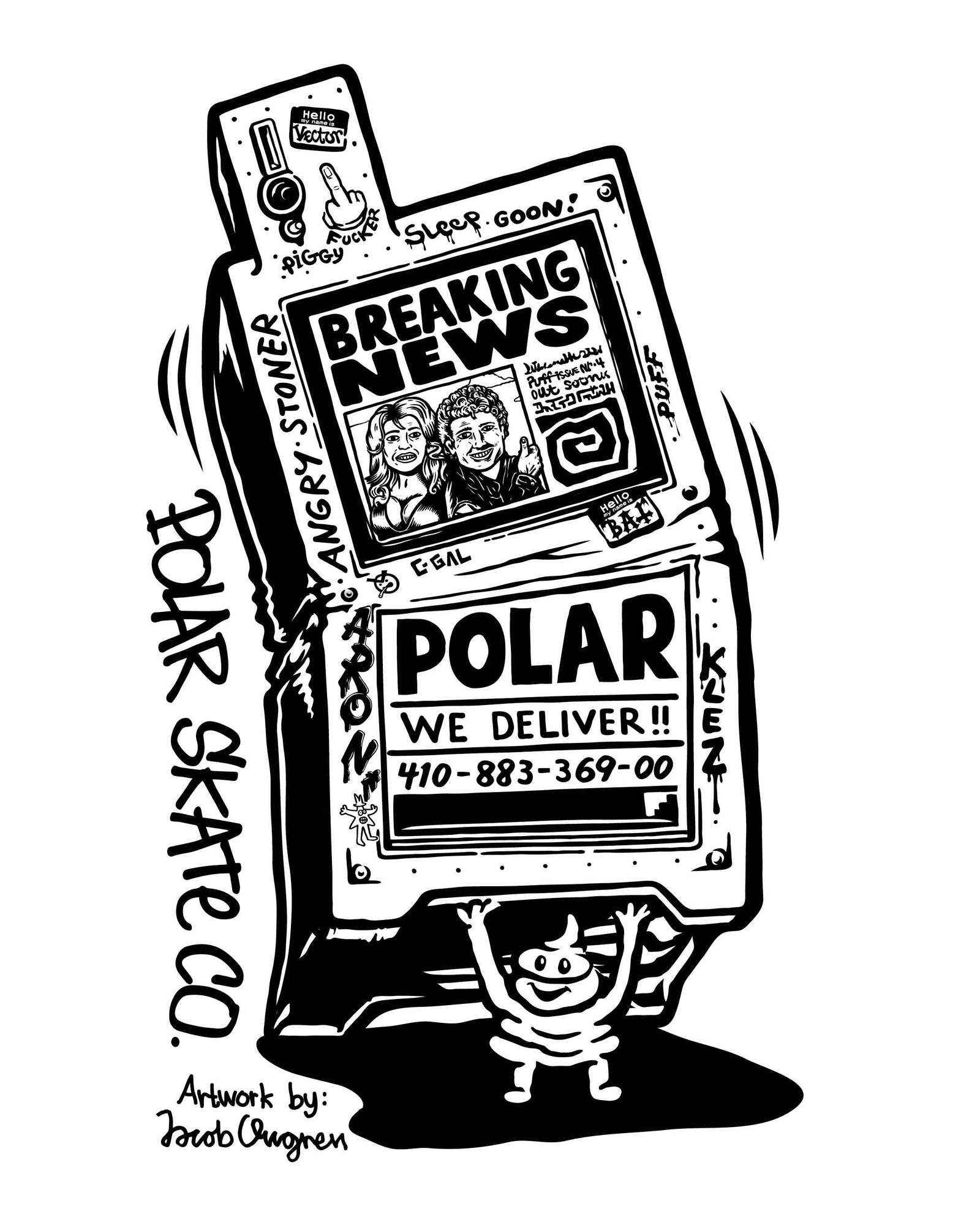 Yeah, I mean, I think I started a lot more detailed with everything because I never had any thought of redoing things in the computer and making it digital. I was like, “I just scan, and print it on the board.” The whole process of working as an illustrator and doing vector graphics and all of that, it made me simplify things lots of times. Even if I liked more complex drawings, the medium kind of pushed me towards making simpler stuff. Especially if you're making comics, you can't start off too detailed because then you must keep it through like 20 pages of doing the same character.
