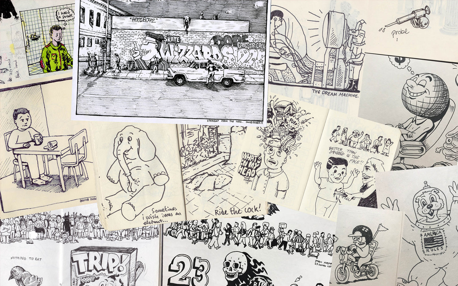 Yeah. It's hard to say exactly what gave me the drive to do drawings. I was very inspired by skateboard graphics and records, and different cool illustrations, especially in my youth. I don't know if it was the boredom of math and other subjects, that I thought that I had to do something else. I'm not sure if it was that or if I just had a compulsion to draw and try to create something. And once I got going in a way, classmates would be like, “oh, that's a cool drawing!” Then I got this little spark, and I started thinking that it can become something. That just developed the whole time, where it got better and better, I guess. And now it's kind of the opposite. The only time I show drawings to someone is when I'm insecure about something. And usually, I know what's wrong with it, but it's quite an effort to fix it. And then I’m like, “fuck, I wish I hadn't said that because I know it myself.” Then I must sit down and change it.