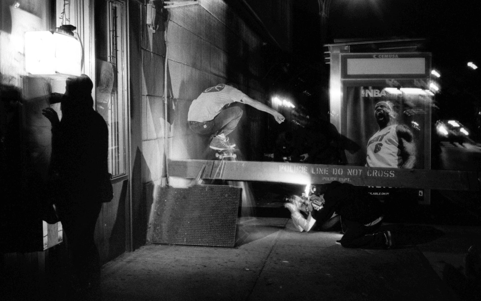 “The most meaningful photo I see in this group is a photo of Alv doing a wallie over a police barrier. I’ll never forget this photo actually because every time I see these police posts I have this vivid memory of Alv eating an entire dinner of nachos and drinks. After a full day of skating and filming. A long day. Next thing I know Pontus is getting excited to film a clip and he moves this police barricade over to this cellar door and props it up. Within a few minutes he’s jamming over it and the clip comes out so good but I could never imagine getting myself to fly around with a stomach full of heavy Mexican food.“