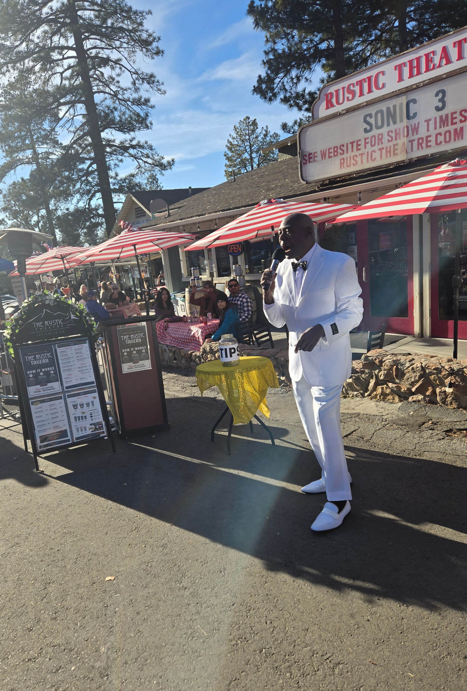 So, I was out singing and wearing my white suit, doing my thing. He was over to my right and he waited till I got done with a song. And he came over and introduced himself and I'm glad he did. He asked me if I do any acting and I told him a little bit and he said, “well, I'm from England and I'm here to do a project. I've been looking around for some street artists. I like the way you interact with people and would like to know if you'd be interested in casting for our small film for the company.” I was down for it, obviously.